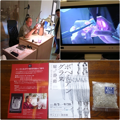 JUGEMテーマ:美術館に行ってきました JUGEMテーマ:うれしかったこと ツキ巡り 悪さが良きに 転ずとき 先月ツキに見放されて辿り着けなかったサントリー美術館に、 閉幕まであと5日となった今日、ようやく駆け込み、鑑賞して来ました。 健康食品のおまけに入っていた招待券を無駄にしたくない!と言うケチな気持ちもあり、 グラスに対する興味がますます盛り上がっちゃって…。 午後から出かけて行ったところ、モーゼル社ガラス彫刻実演のご案内 のパンフが目に入り 展示を観終わった後に、今日・...