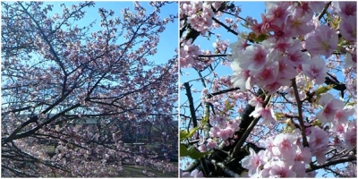 JUGEMテーマ:お花見&桜 JUGEMテーマ:うれしかったこと 青い空 河津桜が 満開です 今週も青空と近所の河津桜のコラボのご紹介が出来て、幸せです ほぼ満開!ちょこっと葉っぱも出始めました 風の強い日もあったので、もう散ってしまったかと思っていましたが、意外です 桜の花は、受粉しないと散らないと言う話しを聞いた事が有るので まだもっているのかも知れませんね 次世代に繋ぐ為の自然の営み・頑張ってます
