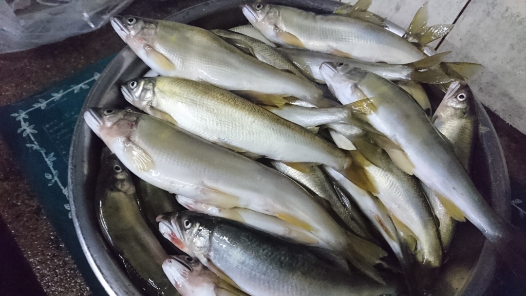 「会社にいらっしゃいますか?」 「これから鮎をお持ちします」とお電話を頂いた 鮎が届きました (約80匹) 「こんなに・・・」 (どうするの?) 落ち鮎? 子持ち鮎ではないような・・・ でも、脂が乗って美味しそう 重量を測ってみた 127g さて、長さは? 20cmオーバー その他、どれもこれも丸々太ってる 標準サイズの鮎 50g 比べてみました &nbs...