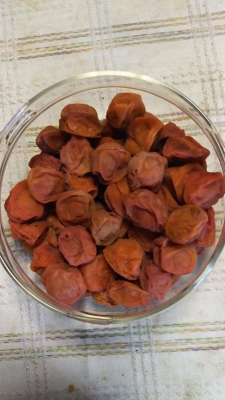 久々に・・・ 今年も「梅干し」を作ってみた。 3年ほど前に・・・ 10kgの梅干しを作ったら多すぎて今でも消化中(笑) そろそろ・・・ 無くなりそうだったので今年は5kgほどにした。 土用干しを・・・ するために、3日3晩と言われるが日当たりの良い サンルームで干しているので夜露がかからない。 仕事中に雨でも降られたら元も子もないからである。 そこで・・・ 毎日夜露の代わりに日本酒を霧吹きで吹きかけ1個ずつ裏返し。 サンルームなので我が家では5日5晩干し...