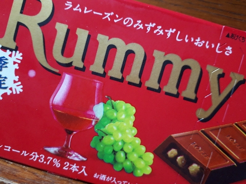 JUGEMテーマ:季節の出来事 この季節、やっぱり買ってしまいます。 ワインに合うんです。 ラムレーズンと柔らかな甘さのチョコレートが良いハーモニーを奏でます。 ビールにも合います。 あ・・・食べちゃった。また買って来なければ!