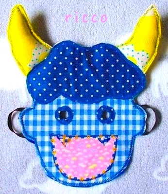シッター宅での 豆まき用に、青鬼さんのお面を作りました〜 中途半端に残っていたハギレ達を フル活用^^ お子様が 怖がらないよう、本格的な『鬼の形相』ではなく、 可愛気のある鬼さんにしようとしたものの、、、 お面なので、目の部分に穴を開けたら、 『目だけが笑っていない笑顔』みたいになり、 別の意味で怖いっていう。。。 耳に引っかける部分は、 輪ゴムの代わりに、ライクラファイバー入りの平ゴム(黒)を使用。 口の縁取りと 牙の部分は、チェック柄の『マスキングテープ』を使用。...