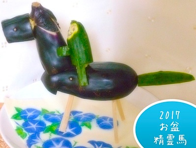 今年のお盆も 茄子ときゅうりで 精霊馬を作りました。。。! 精霊馬の足は、割り箸、胴体は爪楊枝で つなぎ合わせています。 しっぽ、ぴょーん! 今まで作った精霊馬は、重さと足の配置のバランスが悪くて、 手を放した途端に倒れたり、10秒以上 立っていられなかったり、 毎年、数々の失敗作を生み出してきましたが、、、 今年の精霊馬は、、、なんと、、、倒れません。。。! 背中に 父(きゅうり)を乗せたまま、ずーっと立っていられるの...