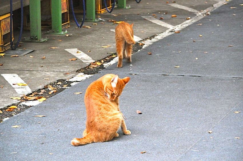 JUGEMテーマ:街の散策兄弟なのか同じ模様の猫が二匹。歩行者を気にする事も無くマイペース。これぞ猫というような態度です。上の写真でしっぽだけを写したのがこのトラです。この猫は愛想がよく近寄ってきます。きれいで毛並みもいいし首輪もしているから飼い猫の様なノラちゃんです。
