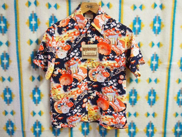 ヴィンテージ市場において不動の人気を誇るこちらの柄 【TROPICANA “THE ROYAL WAGON”】 品番 SS36659 カラー (128)ネイビー サイズ S・M・L 価格 ¥18,000 +税 40年代のオリエンタルブームの影響により 他のブランドと比較しても 圧倒的に和柄の生産数が多かったトロピカーナ・スポーツウェア社 ロイヤルワゴン(御所車)をモチーフとし 典型的とも言えそうな女性用の着物柄ですね この柄の着物はイメージしやすいんじ...