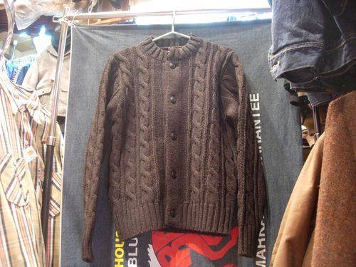 ケーブル編みのざっくりとしたニットカーディガンが入荷クルーネックのフィッシャーマンニットをフルオープンに変更したデザインでフロントボタンはぬくもりのあるウッド製を調達クルーネックの特性を生かしネックのトップまでボタンを留められる防寒性の高い仕様2色の糸を撚った毛で編まれているので独特な杢調の表情を醸していますシンプルなだけに生地感が際立つスティーブンソンならではの一着ですね価格、サイズ、画像はこちらそれではまたJUGEMテーマ:ジャンキースタイル日和