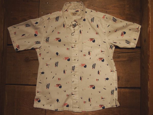 こんばんは!南です!😊 今日は日中ずっと天気がよく むしろちょっと暑いくらいでした お店にも小さな扇風機を発見!! これはもう!! 夏物の新作を! おすすめするしかないですね!!! 入ってきました! SUGAR CANE / FICTION ROMANCE 半袖シャツ!!! 生地がサテンとポプリンのコンビで さらさら涼しい〜〜〜!! 実はこの生地、 昭和30年代に日本で製造され アメリカに輸出していたモノを再現しています しかもみなさん!きいてください! このシャツ実は...