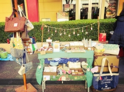 土曜日に8月ぶりに海老名で出店してきました! 毎月開催される長く続いているマーケットで、地元の認知度も高く、出店数もとっても多いです。受付順に好きなブースが選べるので、始発でいらっしゃる出店者さんも多いみたい。私は空いてるとこで良いかなーと思ってるのでのんびり出発なのですが(笑)。それにしてもゆっくり出すぎて、9時を過ぎてしまい、焦りましたが(^_^;) ちょっと遅かったこともあって、もちろん真ん中はうまってるし、奥の方もほぼうまっていたので、はじめての位置、ステージ右手のフレッシュネスバーガー前...