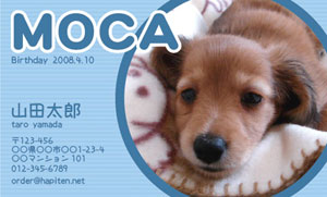 我が家はワンちゃんを飼ってます。 ミニチュアダックスのモカちゃん8歳、女の子です。 名刺のサンプルなどにちょいちょい使わせてもらうので、これからは当ショップの看板犬になりますねw 7歳の長男と、4歳の次男がいるんですが、子供達が生まれたばかりの頃のモカは、お姉さんって感じで、子供達を見守ってくれていたのですが、今では子供達にべったり甘えて、長女から末っ子になっておりますw ペットの名刺の「ハピテン」