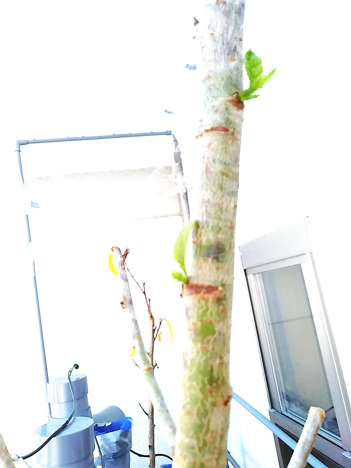JUGEMテーマ:水耕栽培日記 11月も中旬を迎えて、ようやく関西も少し寒くなってきました。それでも日中はまだまだ暖かいです。 さて、水耕栽培器の水漏れもほぼ収まり、水の循環もきちんと回るようになって、予定通り1週間に1回、タンクの水を入れ替えて(入れ替えなくてもいいけど)ハイポネックスを足すだけで事足りるという、素敵な状態になりました。 そんななか、サクランボの苗木から新芽が出てきました!秋だというのに・・・ 奥で紅葉しているのは桃(白鳳)です...