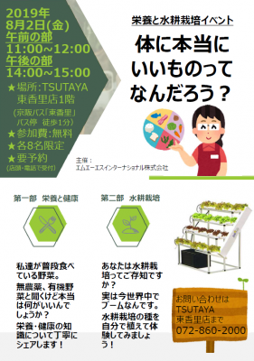 JUGEMテーマ:水耕栽培日記 はろーです🌞 メガネ女子です👓 先週の金曜日に念願の水耕栽培のイベントをやりました!✨ なんか祭りの縁日みたいになってる写真笑 ★水耕栽培イベント 8月2日(金)11:00〜16:00 蔦屋書店東香里店 TSUTAYAに水耕栽培のシステムを持っていき、実際にお客さんに見てもらう('ω') 持っていったのはこの二つ! 2IN1タイプ(トマト) STEPタイプ(ベビー...