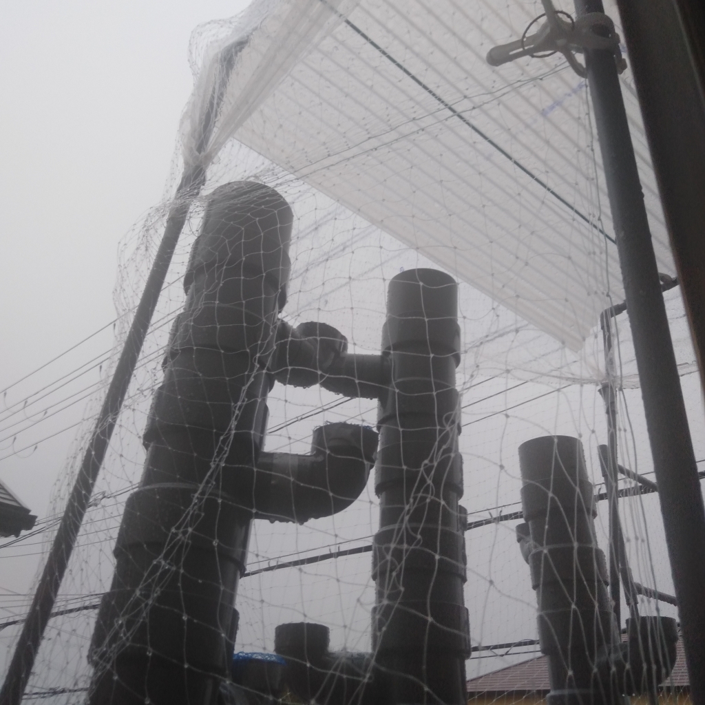 JUGEMテーマ:水耕栽培日記 先週の3連休で、おおむね水耕栽培器、鳥よけネット、水耕栽培器への配水機器ができました。先週末の水耕栽培への労働は結構さぼったので、実労働は6時間もないくらいです。 透明の鳥よけネットに変えたので、外観もほとんど目立ちません。 使ったネットはこちら。amazonで1860円で3m×8m。以前、ホームセンターで購入した青のネットが同じ量で2000円越えでしたので、amazonのほうがお得です。 そして潅水チューブ、点滴ヘッド...