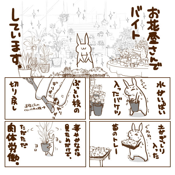 何となーく、ショッピングモールの一角の花屋さんって、華やかで、かわいくて、マッタリしてて、 何か喪女っぽさを軽減する的な何かが得られるのでは、、、 と、思っていた時期が私にもありましたwwww 忙しいし、重い物を運ぶ事が多いし、泥か砂まみれになるしwwww 今の時期は桃の節句が近いので、桃の花を枝で売ってます。 水の吸い方を良くするために、切り口を毎日1cmくらい切るのですが、もう、手に豆が出来そうですwwww 何だか、手とか腕とか肩とかがゴリゴリのムキムキになりそうで怖いwwww む...