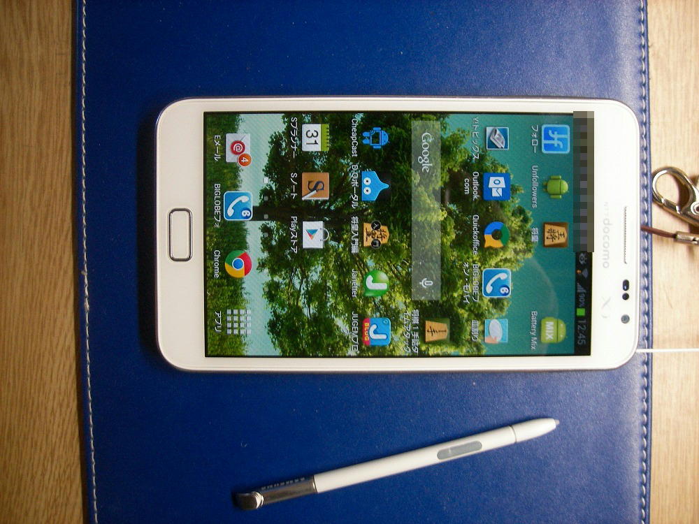 ○参考画面 ○スタイラスペン。右下に収納してあります。スマホ逆さまにしています。 ○電源 右側 ○左側ボリューム 上部。イヤホンジャック。右はワンセグのアンテナ。 ○正面 ○背面 ○アンテナを立てた所。 ○上部からスライドすると、Wi-Fiやバイブ、サウンド、Bluetooth、画面回転などのON/OFFがかんたんに行えます。 Galaxy noteの初代を使っています。まえの携帯もサムスンで、ガラケーの全面液晶という不思議な機種でした。いまのiPhoneみたいで片手で全て操作が出来て便利だったです...