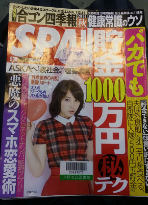 JUGEMテーマ:ショップブログ 小野市立図書館に「週刊SPA!(スパ)」が置いてある。 個人的にはいいのだが、この半分エロ本のような雑誌を図書館に置くのは社会的には如何なものかと思う。