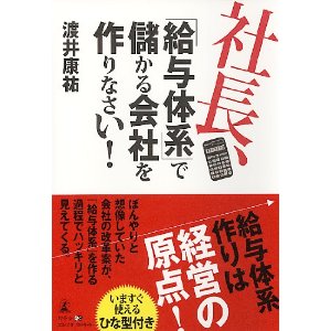 JUGEMテーマ:ショップブログ 社長、「給与体系」で儲かる会社を作りなさい! 渡井 康祐 (著)を読みました。 透明性のある給与体系を作ることの重要性を学びました。すぐには役に立たないけど後々役に立つのではないかと思います。ただ、最終章の「儲かる会社の給与体系の作り方・運用の仕方(実務・ノウハウ)」の所をもっと詳しく手とり足とり教えて欲しかった。この説明では「丸パクリ」という風にはできないと思います。まあ、かなり参考にはなるので本書を参考にしながら自社にあった給与体系を模索するのがいいと思い...