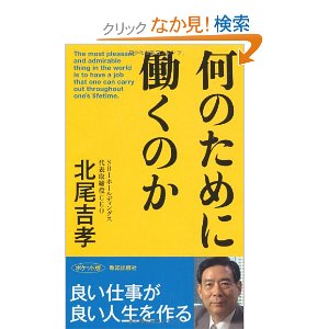JUGEMテーマ:ショップブログ SBIホールディングス代表取締役CEOの北尾吉孝氏の「何のために働くのか」という本を読みました。 その中で気になった言葉は 「すべての試練が自分の人間的成長を促してくれていると思えば、それを拒む理由などどこにもありません。」 というところ。これに私が敬愛するソフトバンクの孫正義社長の思想をプラスすれば 「人間的に成長できる道を選び、かつ7割以上の勝算まで高めて勝負する。」 ということになるのではないでしょうか。 それからこれは京セラの創業者の稲盛和夫氏の...