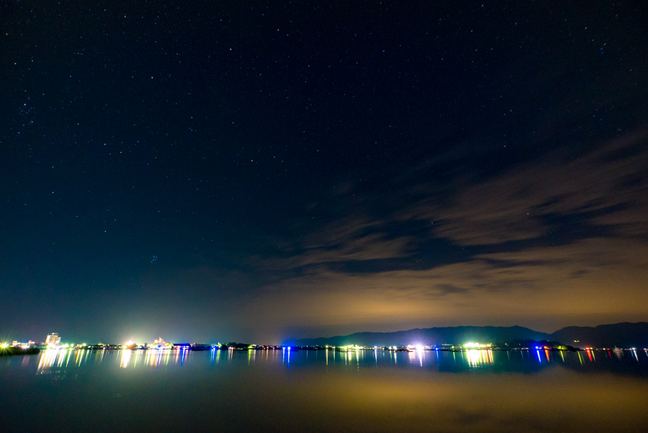 この寒い季節になると煌びやかな景色を求めたくなります。 【α7SII,LA-EA4,Vario Sonnar T*16-35mm F2.8 ZA SSM,30,F8,iso6400】 まぁ、夜になると灯りの少ない佐渡島ですから”煌びやか”といってもそうそうそんな景色にはお目にかかることはできません。 【α7SII,LA-EA4,70-300mm F4.5-5.6 G SSM,30,F8,iso2000】 加茂湖(Kamo-ko Lake)です。 対岸に運河を望む場所に腰かけていました。 風もなく、鏡のような湖面に対岸の灯り...