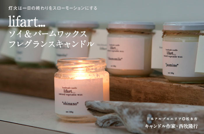 JUGEMテーマ:信州プレミアムショップブログ 心地良い灯りとやさしい香りで包み込んでくれるlifart...さんのアロマキャンドル。 現在、お隣のPEAKs Life Style Shopにもディスプレイしています。 キャンドルは、りんごや木曽ひのきの香りなど全6種類。 やさしい香りでとっても癒されますよ。 ホワイトデーのお返しにしても喜んでいただけると思います。 善光寺の近くにお越しの際は、ぜひPEAKs Life Style Shopと信州プレミアムショップにお立ち寄りください。 lifart...の詳しいご紹介はこちらから