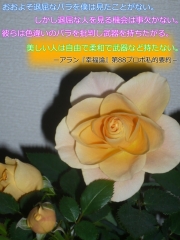 おおよそ退屈なバラを僕は見たことがない。 しかし退屈な人を見る機会は事欠かない。 彼らは色違いのバラを批判し武器を持ちたがる。 美しい人は自由で柔和で武器など持たない。 ーアラン『幸福論』第88プロポ『詩人たち』私的要約− ・・・ あなたの身の回りの人、例えばご主人や子どもさんやご両親は、あなたの顔を見て不安を感じていないだろうか? 身の回りの人に、あなたの顔は柔和なそして美しい顔に映っているのだろうか? 今夜あたり、こ...