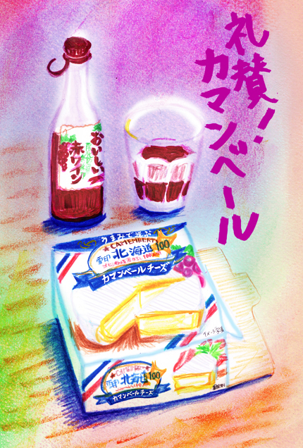 一袋38円のもやしを、冷蔵庫のタッパで10日は持たせる私だけど…(毎日水を入れ替えていると、 ちゃんと持つのです)その十倍くらいするカマンベールは、あっと言う間に消費してしまいます。なので、カマンベールを買うときは、「いいの? いいのか、私?」といつもドキドキ。ちっさいヤツです今日は、そんなカマンベールの箱を絵に描いていたら…発見がありました!!まず、正面の写真、カマンベールの後ろに「ブドウ」がさりげなく置かれていました。すみの角っこには「イメージ写真」と小さく注釈入りです。そうかだから私は、普段...