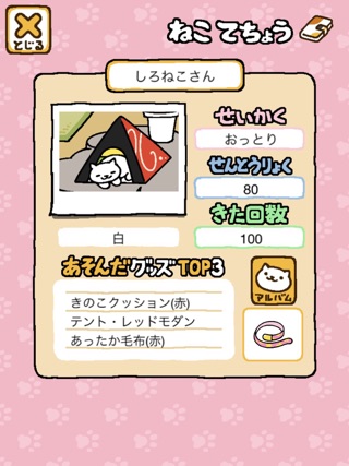 JUGEMテーマ:ひとりごちる 今日で投稿記事が『100』となりました 我ながらよく続いていると思います。 これからも思いついたことをこつこつ書いていこう、っと。 偶然にもこの子も今日で『100』回遊びに来てくれました〜。 レアねこもいるけど、いつも来てくれるねこたちのほうがかわいらしくて、いいや。 ゲームだけどていねいに育ててます