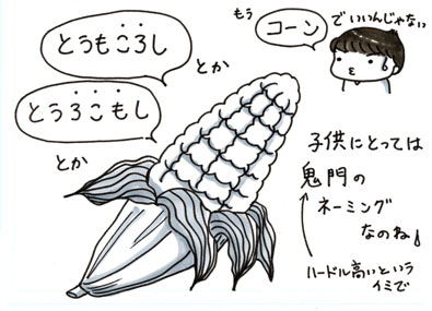 JUGEMテーマ:子育て絵日記 ちょっと言葉が遅いかな…と周囲を心配させていた にいにさんだが、3歳を過ぎる頃になると年相応に ちゃんとお話が出来るようになった。 しかしまだまだ舌が回らない様で、先日は 「バーベキュー」を「ばーべちゅー」と言ったり 「僕が寝てる時」を「僕が寝ててる時」と言ったり 「今日競争した」を「ちょう、ちょうそうした」と言ったり(鳥葬!?) そして子供のとって言いにくい単語ナンバーワンである トウモロコシを「とうろこもし」と言っていた。 &...