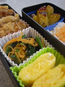 ≪今日のお品書≫ ・唐揚げ ・ほうれん草とニンジンのナムル ・甘い玉子焼き ・冷食大学芋 ・まっ白ご飯に鮭フレーク 都大会予選1日目。 次男は2日目の明日、なので今日はテント下で応援。 暑くなりそうなので、保冷剤代わりにミネラルウォーターのペットボトルを凍らせてランチバックにいれました。 水筒の飲み物だけでは足りない事もあるようで、 解凍されていれば水分補給するなり頭にかけるなり手を洗うなりしてるようですよ。 ***** 前々から画像デカくない?と思っていたので今日は小さくし...