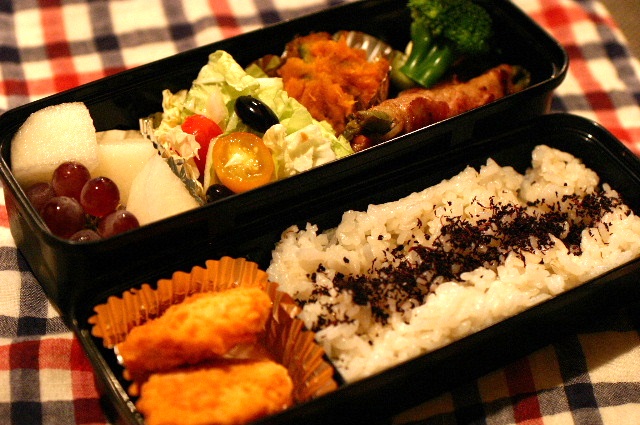 JUGEMテーマ:日常。 夏休みも終わり 昨日は始業式でお昼までだったので 今日からとうとうお弁当再開です(涙) 豚カツ 茹でブロッコリー(マヨネーズ) いんげんの豚肉巻き(ステーキソース) カボチャとレーズンの茶巾 白菜とプチトマトと黒豆のサラダ 梨・デラウェア 玄米ご飯(ゆかり) いつもclickありがとうございます! 3つのランキングサイトに参加しています♪ 上のリス君やバナーをclickしていただけると ランクが上がり励みになります♪