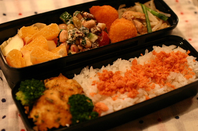 JUGEMテーマ:日常。 バジル&チーズチキン唐揚げ 茹でブロッコリー 鶏もも肉と小松菜ともやしの桜えび炒め コーンクリームコロッケ ミックスビーンズとプチトマト・アーモンドチーズ・ちくわ・大葉・キュウリ・レーズンのゴママヨサラダ りんご、はっさく 白米(鮭フレーク) いつもclickありがとうございます! 3つのランキングサイトに参加しています♪ 上のリス君やバナーをclickしていただけると ランクが上がり励みになります♪