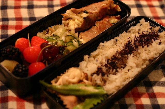 JUGEMテーマ:日常。 さつまいもと豚肉の塩煮 ほうれん草のココット ズッキーニと豆腐のチーズ玉子とじ バジルチキン唐揚げ、プチトマト コーンクリームコロッケ ブラックベリー、さくらんぼ 麦ごはん(鮭入り紫蘇わかめ) いつもclickありがとうございます! 3つのランキングサイトに参加しています♪ 上のリス君やバナーをclickしていただけると ランクが上がり励みになります♪