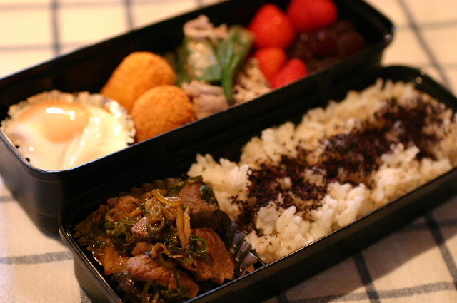 JUGEMテーマ:日常。 今日は日曜日ですが 学校行事があり、お弁当有りです 牛肉と茄子のネギ生姜炒め ほうれん草のココツト コーンクリームコロッケ オクラと豚しゃぶの胡麻サラダ ぶどう、いちご 麦ごはん(紫蘇ふりかけ) いつもclickありがとうございます! 3つのランキングサイトに参加しています♪ 上のリス君やバナーをclickしていただけると ランクが上がり励みになります♪