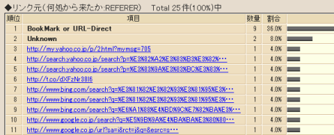 時折アクセス解析の生ログを閲覧することがある。通常のアクセス解析の解析結果画面でリンク元が「BookMark or URL-Direct」と表示されるものがあるからである。その場合言葉通りであればブックマークしている訪問者なら一見さんというのはありえないので、訪問日数に反映されるはずなのだがほぼすべて訪問日数が1の初回訪問者扱いなのだ。 そこでさらなる情報を求めてそこに表示されているIPアドレスを頼りに生ログを見に行くわけだが、この画面に入ると訪問日数が多い「ご常連様」はすぐに分かる。ホスト名にその地域かそれ...
