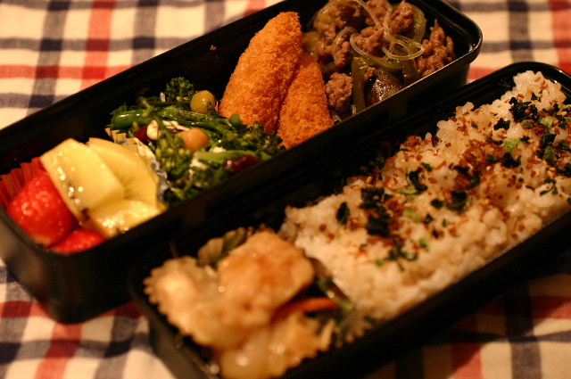 JUGEMテーマ:日常。 カニ焼売、塩キュウリ 新ゴボウと長ネギ、鶏の煮物 皮付きフライドポテト 黒豆入りカボチャ巾着 ソースカツ キュウリちくわ、プチトマト ネーブル、いちご 玄米ご飯(鮭フレーク) いつもclickありがとうございます! 3つのランキングサイトに参加しています♪ 上のリス君やバナーをclickしていただけると ランクが上がり励みになります♪