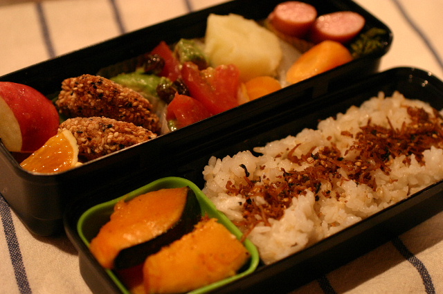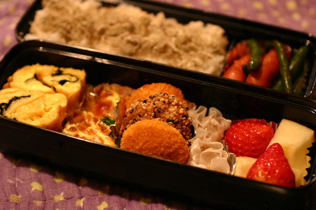 JUGEMテーマ:日常。 のり入り玉子焼き ブロッコリーとプチトマトのチーズ焼き エビよせフライ ごま味噌チキンカツ 肉焼売 ソーセージとインゲンのケチャップ炒め りんご・いちご 玄米ご飯(おぼろ昆布のせ) いつもclickありがとうございます! 3つのランキングサイトに参加しています♪ 上のリス君やバナーをclickしていただけると ...