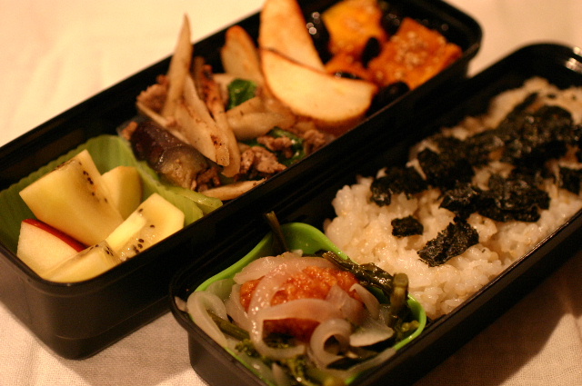 JUGEMテーマ:日常。 鶏の竜田揚げと新玉ねぎ、クキナのマリネ カボチャのごましょう油あえ&黒豆 皮付きフライドポテト 新ゴボウと茄子、小松菜、トリプルミンチのチャンプルー キウイ、リンゴ 玄米ご飯(のり) いつもclickありがとうございます! 3つのランキングサイトに参加しています♪ 上のリス君やバナーをclickしていただけると ランクが上がり励みになります♪