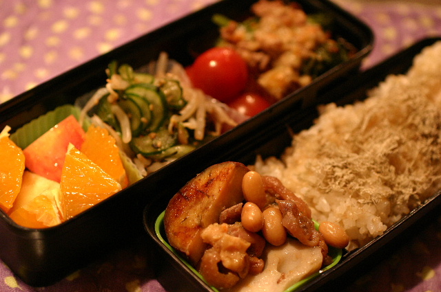 JUGEMテーマ:日常。 鶏と大豆とレンコンとさつまいもの煮物 ブロッコリーとカボチャとミンチのチーズ焼き プチトマト キュウリともやしの胡麻醤油あえ りんご・はるみ(みかん) 玄米ご飯(おぼろ昆布) いつもclickありがとうございます! 3つのランキングサイトに参加しています♪ 上のリス君やバナーをclickしていただけると ランクが上がり励みになります♪