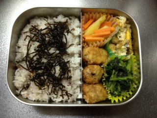 JUGEMテーマ:お弁当 作ることに必死で中々写真が撮れないっていうw いつかはキレイでかわいいお弁当を!!と思いつつ、今は昭和弁当な感じ(〜w〜; 一応、栄養は考えているつもりで、4種類ぐらいのおかずは入れるようにしています! まだまだ手際が悪くて時間がかかるけど、精進していきたいと思います! ♪鮭の塩焼き♪ ♪白だし卵焼き♪ ♪ごぼうのきんぴら♪ ♪ほうれん草のベーコン炒め♪