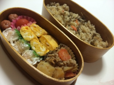 おはようございます♪ このブログで、もう1年分のお弁当をアップしてるんだなぁ〜♪ 結構、飛び飛びだったりするけどw でも、ちりも積もれば。。。ですねw 今日は、初めてのパターンかもしれないお弁当。 マイタケご飯のお弁当です♪ マイタケご飯は、いい栄養がたっぷり♪ 水溶性のマイタケの栄養分をたぁっぷり吸ったご飯です。 めずらしく、旦那さんのリクエスト。 マイタケご飯♪ そぼろ肉じゃが たまご焼き シュウマイ ウインナー ミニトマト わぁ、おいそ(笑) JUGEMテーマ:お弁当...