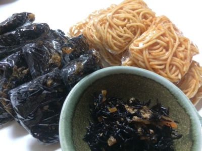 仕込みの写真は久しぶりですね〜。 今日はそんなに多くないですけど(笑) パスタは具のないナポリタンw (つまり、ケチャップスパゲティ) 煮物は ひじきです^^ ●ケチャップスパゲティ 半分に折ったパスタをたっぷりの熱湯でゆでる。 のですが、熱湯に入れたら蓋をしてゆで時間まで火を消して放置w 出来上がったパスタにオリーブオイルとバターを少し混ぜ さらにケチャップと塩コショウ。。。 で、、出来上がり〜なので冷まします。 ●ひじき ひじき一袋・・・25〜30gと 細かく切ったニンジン...