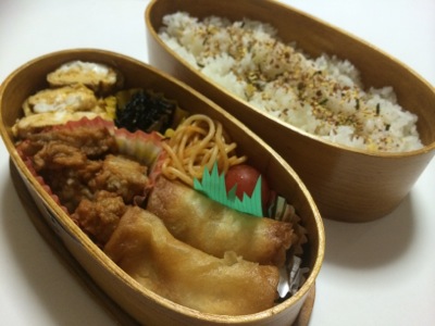 おはようございます。 昨日の夜は、霧で外が真っ白でびっくり。 今朝も、じめじめ湿っぽい天気です。 昨日の仕込みを早速使ってます。 野菜春巻 たまごやき ケチャップスパゲティ ひじき ごぼうのから揚げ ひじき煮 ミニトマト 今日もよい一日に♪ JUGEMテーマ:お弁当