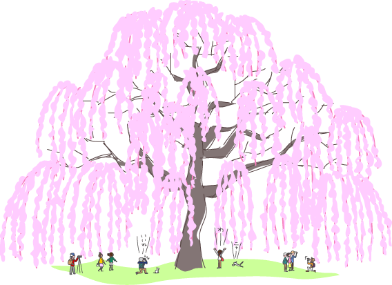 今朝いきなり 「出かけるか!(・∀・)/ 」 と、だんなに言われ(いつもいきなりなのですが) 山梨県の塩山に行ってきました。 慈雲寺の、推定樹齢300年のイトザクラです。 降り注ぐような桜の花のシャワーヽ(´▽`)ノ 実際は夜になってライトアップされてから見に行ったので 上のイラストの雰囲気とはちょっと違うのですが、 周り一面真っ暗な桃畑で その中にぽわ〜んと浮かび上がっ...