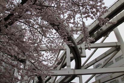 千葉市の中心街をぶらりおっ散歩 本日も応援よろしくお願い致します 人気blogランキング 千葉モノレールの橋梁が入り組んでいる地点がある。 モノレールに沿って川沿いを歩く。 桜並木はいままさに満開である。 お気に入りの場所の一つだ。 モノレールはほとんど音もなくシューッと、オレの頭上を通り過ぎていく。 ちょっと目先を変えて、、、ポチッ と、こんなことをしていたから「観桜会」に遅れたのはここだけの話。 来年はもっとボリュームのある桜をみたいものだ。 JUGEMテーマ:お花見...