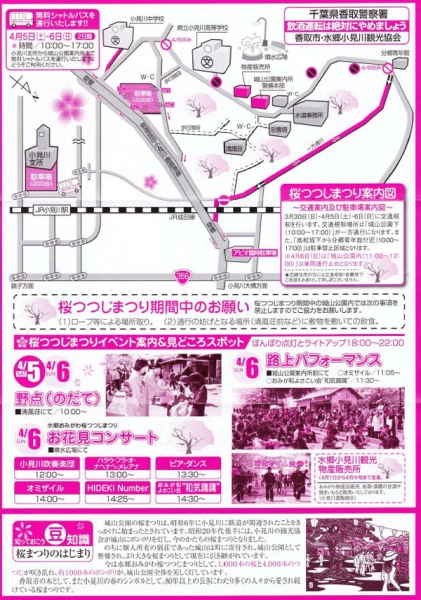 JUGEMテーマ:お花見&桜 北総随一の桜の名所として知られる小見川城山公園は、 ソメイヨシノなどの桜1000本と、つつじ4000本が山一帯に咲き乱れます。 特に夜〔18時〜22時〕は、赤橋ほか全山に約1000個のぼんぼりが灯り〔4月上旬〜中旬〕、 幻想的な夜桜が楽しめます。 そんな小見川の城山公園の桜も見ごろを迎えてきました! そして、今週末は様々なイベントが開催されます!! お近くにお越しの際は、是非、遊びにいらしてください♪ その時は、水郷のとりやさんの焼き鳥をお忘れなく(笑) 水郷のとりやさん...