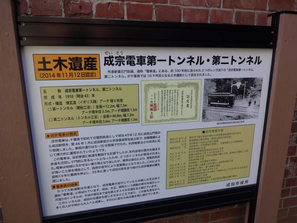 JUGEMテーマ:お花見&桜 成田市役所のすぐ近くにある電車道の、古いレンガ作りのトンネルが、 土木遺産に登録されたと聞き、桜の満開の時期に見に行って来ました まずは成宗電車についてサラッと説明しますと、戦前にあった参拝用の路面電車で 千葉県で初めての電車が走った所とされています・・・!! その後、区間のほとんどが京成と併走するという理由から、必要ないと判断され、 全線廃止、色々な経緯を経て、今現在は千葉交通(バス会社)になっているそうです 使わなくなった車両は、各地の鉄道会社へ買わ...