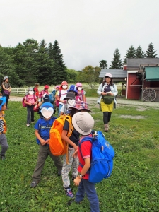 今日は数年ぶりのご依頼でM様率いる夏休みチビッコキャンプの遠足の引率。 小学低学年組にはちょっと厳しいかもしれない川俣渓谷歩き。 天気予報はお昼から雨の予報・・・だいじょうぶかーーー でもでもとてもな元気な小学1,2年生。 皆「なかさーん」と声をかけてくる。 わたしゃ聖徳太子じゃないので一度に二人のお話は聞けないよーーん(笑) キープファームショップでトイレ、体操を済ませてから元気に出〜発〜。 元気な声、統率のとれた動きでキープの広い牧場を突き進む。。。 40分たって...