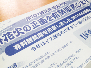 JUGEMテーマ:花火大会 毎年恒例の、足利花火大会。 昨年は、有料観覧席で花火大会を楽しみました。 昨年は、ネットから申し込みをしましたが、今年は、有料観覧席のご案内が届きました。 足利の花火大会は、毎回、トイレがと〜っても混むんです。 トイレに30分並ぶのは当たり前。 トイレットペーパー持参です。 昨年は、100回記念と言うこともあって、有料観覧席を申し込みましたが。 ここ、専用のトイレが付いているのです! トイレを気にせず、花火を楽しめるって幸せです♪ 場所取りもしなくて良いし、桟敷...