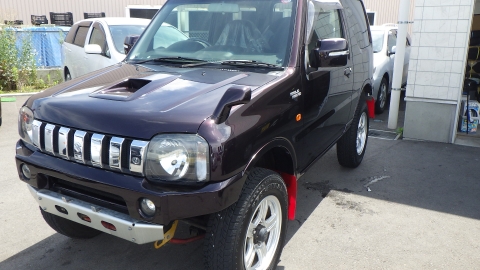 JUGEMテーマ:仕事のこと 車高がアップされたジムニー。 私は詳しくないのですが有名なブランドでの仕上がりとのこと。 ボンネットはダクト部分が樹脂の様だったので要注意でした。 またステッカー類が車体に悪影響を及ぼしていたので、こちらも要注意でした。 年数・距離ともに多めでしたがなかなかカッコいい車です。 磨き甲斐のある車でした。 それにしても今日は暑かった・・・。