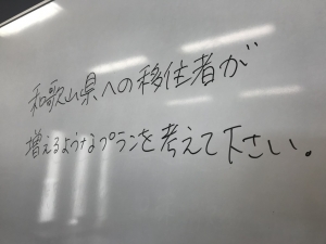 JUGEMテーマ:仕事のこと 私が講師をさせていただいている大学では、公務員志望の学生が多いんです。警察、消防の希望も多いですし、地方自治体職員を希望する学生も多いです。今回は公務員の仕事について理解し、公務員に求められるものは何かを考えてもらう授業でした。 グループワークのテーマは 「和歌山県への移住者が増えるようなプランを考えてください」 私が和歌山県民なので、和歌山県の職員になったつもりで、和歌山県への移住者が増える...