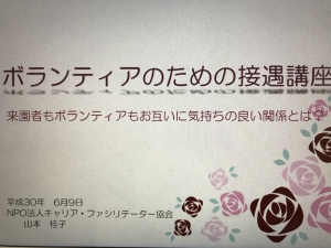 JUGEMテーマ:仕事のこと 今日はボランティアの方で運営されている施設にて、「ボランティアのための接遇講座」をさせていただきました。 自然の森が楽しめる公園です。少し早めにお邪魔して、担当の方に園内の一部を案内していただきました。私は子どもの頃に、両親に山や川に連れて行ってもらい、山歩きや川遊びをしていましたから山が好きなんです。 でも、普段はなかなか山歩きなんてできませんから、久しぶりにじっくりと山や木を見ました。アケビ、クルミ、ヤマモモ、そしてキノコ!い...